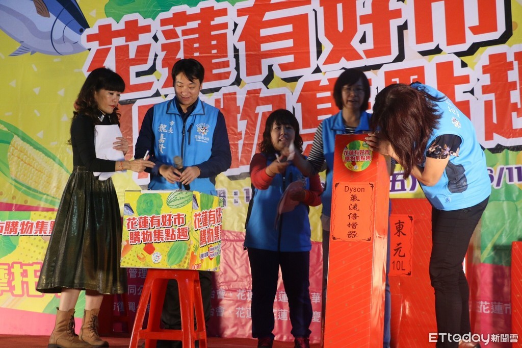 9日下午在市八市場的摸彩活動,魏嘉賢偕同主任秘書翁美華、政風主任陳彥良、市場所長許信都等人出席,花蓮市民代表會主席蘇美珠也與市民代表韓林梅、李振瑋、李正文、平島•部定等人到場,對於市公所辦理這項活絡傳統市場商機的活動都給予高度肯定。另花蓮縣政府秘書范姜幸玲、徐榛蔚立委花蓮服務處主任明良臻、蕭美琴立委服務處副主任王森園以及各市場自治會主委也都到場見證這項摸彩活動。