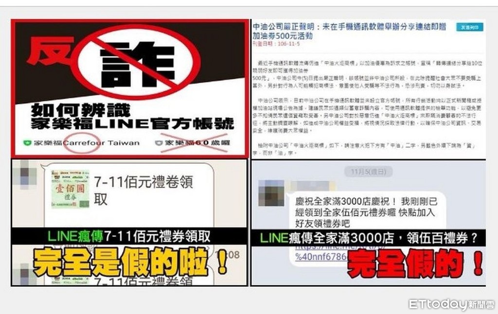台南市警二分局表示,詐騙集團近來假冒台鐵、高鐵、家樂福、全家便利超商 、中油、統一超商等LINE帳號,號稱好友加入即能享優惠,騙取民眾個資,請民眾務必提高警覺。