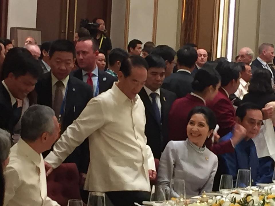 ▲2017越南APEC晚宴,川普與宋楚瑜間只隔了泰國總理帕拉育。(圖/翻攝自謝金河臉書)