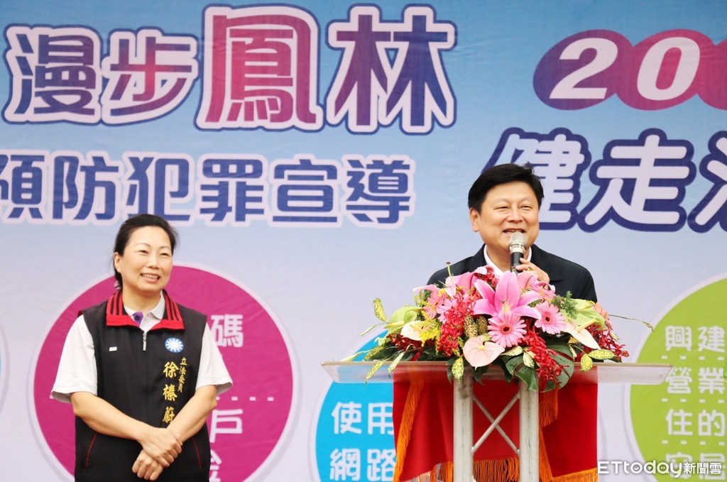 ▲愛戀鳳林-預防犯罪宣導健走活動於鳳林國中登場,縣長傅崐萁、立法委員徐榛蔚等貴賓均到場與民眾伴著綿綿細雨健走,健康活動又不失浪漫氣氛。(圖/花蓮縣政府提供 下同)