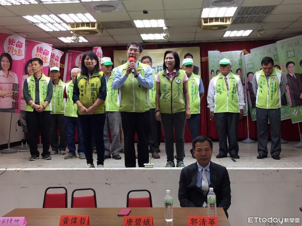民進黨台南市長初選如火荼,台南市議員唐碧娥11日下午5時,為台南市長參選人黃偉哲,舉辦北區後援會成立大會,參與的現場民眾約500人擠爆和順里活動中心,展現2人的高人氣。