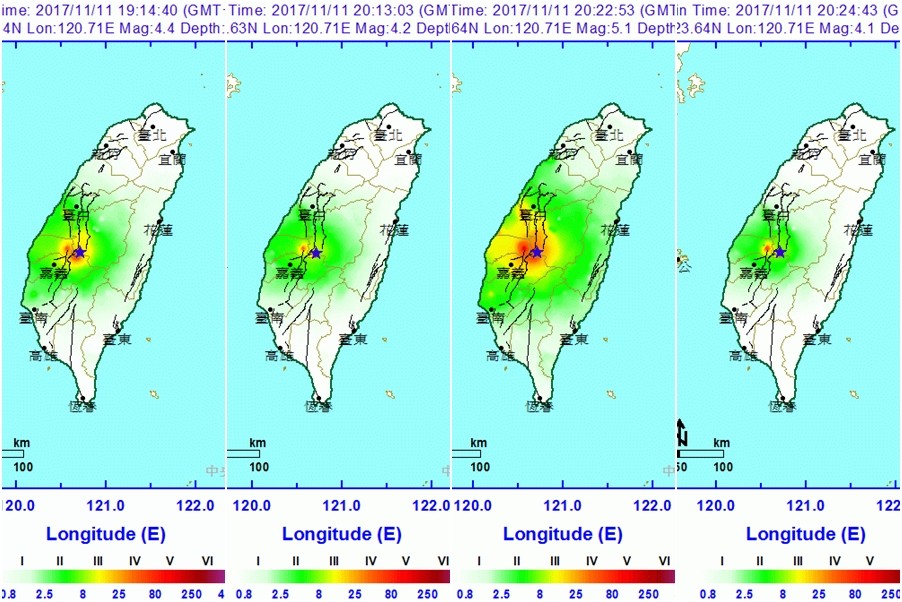 ▲1111南投、雲林連4地震。(圖/中央氣象局)