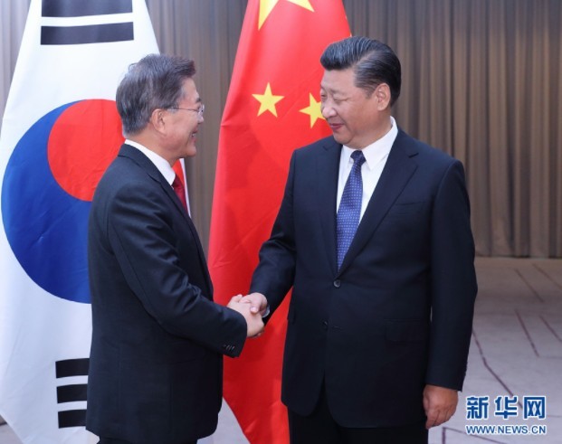 中國國家主席習近平11日於越南會見南韓總統文在寅,這是雙方自10月31日宣布緩和薩德爭議以來,2國領導人首次進行會面。習近平指出,此次會晤將是兩國關係發展與解決朝鮮半島問題的重要契機。韓國青瓦台也在11日表示,總統文在寅將於12月訪中,與習近平舉行會談。