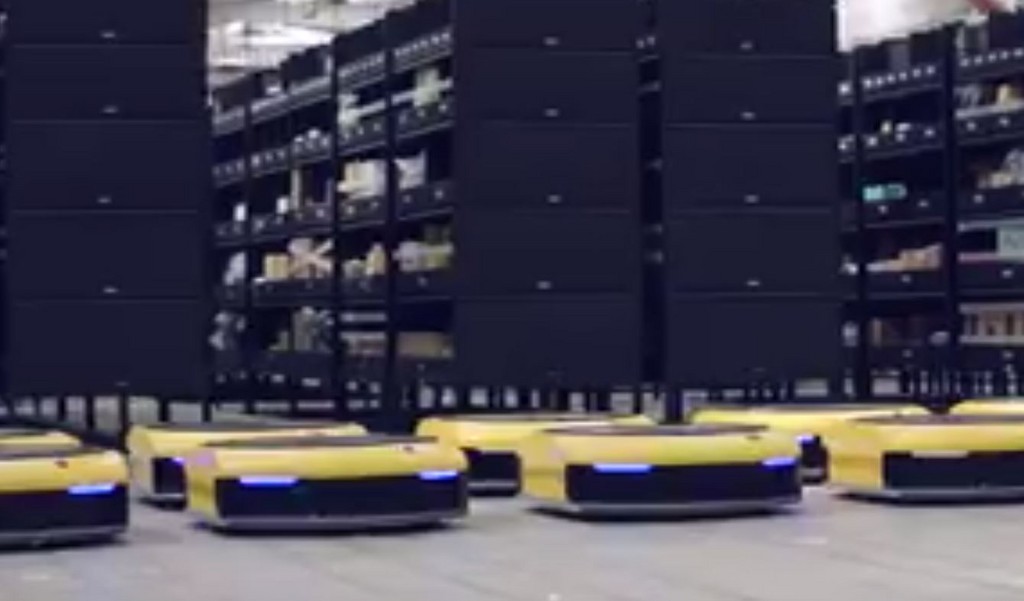 ▲大陸已發展出無人倉庫,揀貨效率比人工高5倍。(圖/翻攝自秒拍)