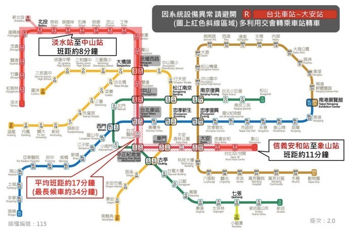 這次列車異常事件,列車延誤26分鐘,計有11部列車、約2千多名旅客受影響,單線運轉時間32 分鐘。北捷表示,如有旅客因本次事件中途提前出站或已進站不搭乘等情形,均可洽車站辦理退費或更正電子票證車票資料。