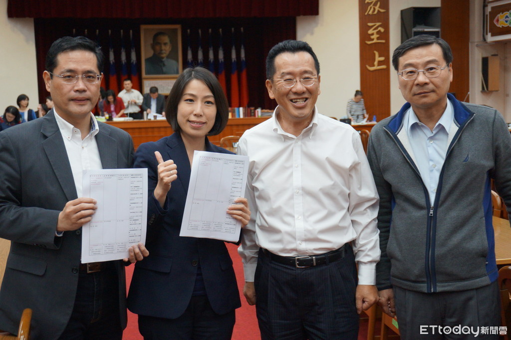 ▲金融監理沙盒草案在立院初審過關,立委江永昌、余宛如、曾銘宗跟金管會主委顧立雄開心合照。(資料照/記者戴瑞瑤攝)