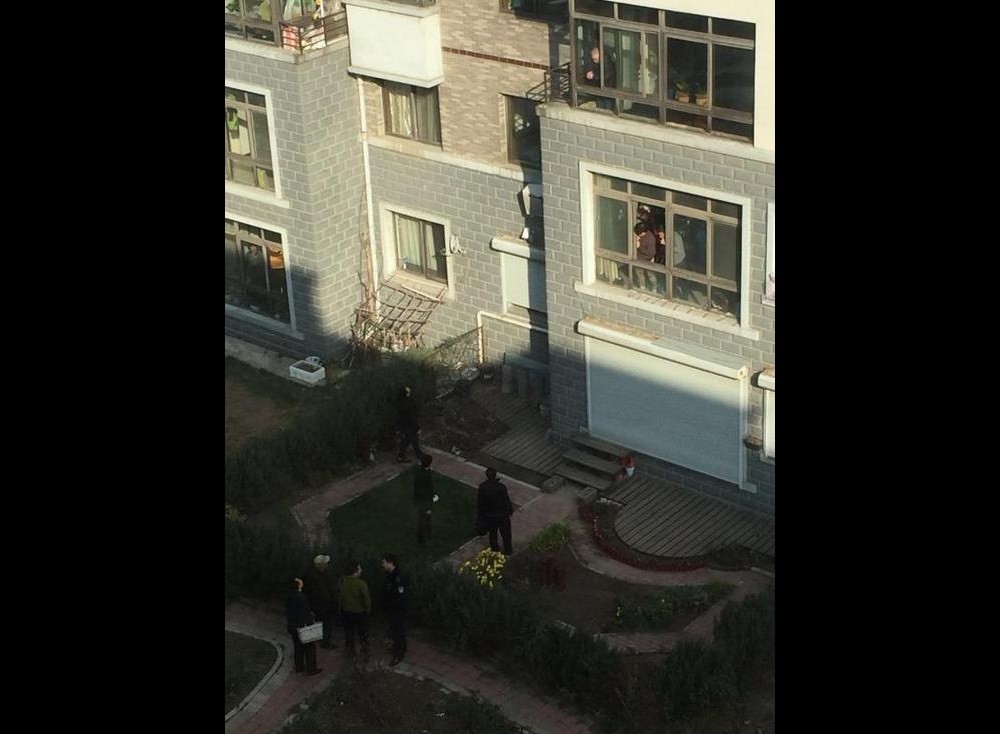 根據《遼瀋晚報》報導,鄰居張大爺透露,凌晨5時許突然聽到「匡噹」一聲巨響,本以為是因為風大把東西吹倒了,隔了幾分鐘後,突然聽到女子的哭聲,打開窗戶一看,一名年輕女子跪在草地大哭,旁邊男子面朝下趴在地上,一動也不動,才發現「不對,這是跳樓了」,趕緊打電話報警。