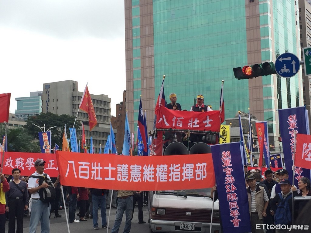 ▲八百壯士在政院前抗議林萬億背棄承諾啟動年改。(圖/記者張暐珩攝,下同)