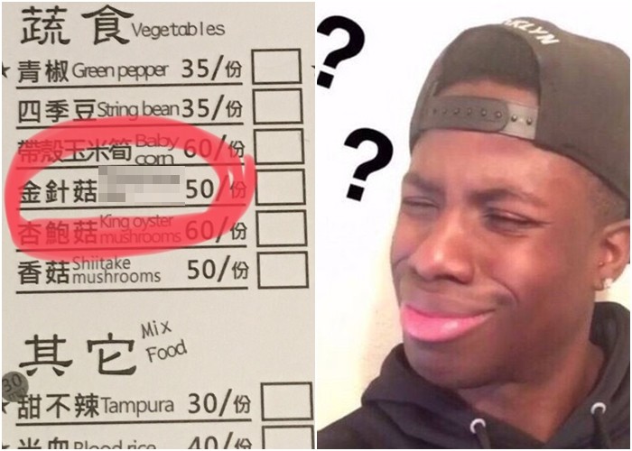 一名Dcard網友分享一張菜單,表示自己有一次發現一個很讓人疑惑的英文翻譯,其他菜名都很正常,唯獨金針菇讓她百思不得其解,她po出來立刻引起網友笑噴,直讚無誤「什麼樣子進去,就什麼樣子出來。」