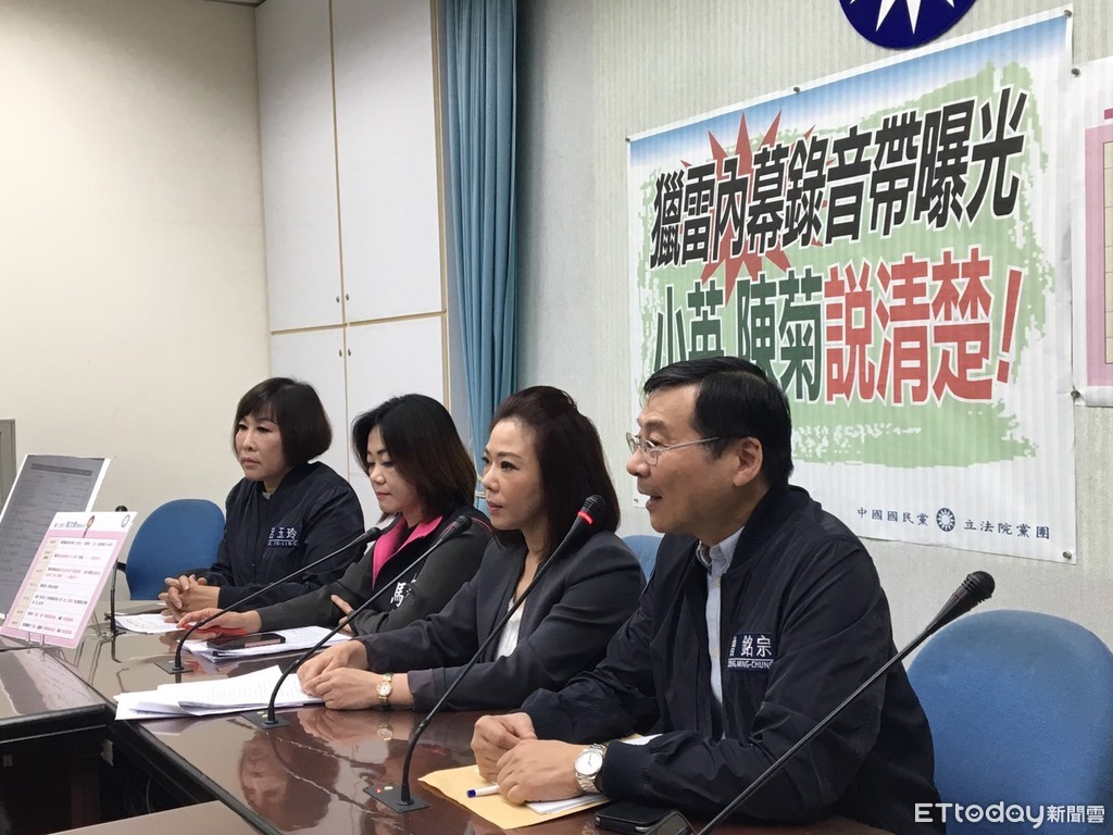 ▲國民黨團召開「獵雷內幕錄影帶曝光,小英陳菊說清楚」記者會。(圖/記者楊佳穎攝)