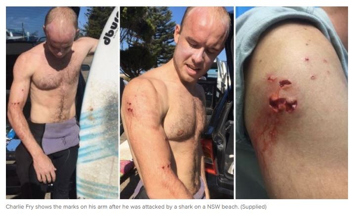 25歲的英國籍醫師弗賴伊(Charlie Fry)在澳洲新南威爾斯州中央海岸衝浪時,遇到1.8公尺長「大白鯊」襲擊,在緊急的情況下,他機智地向鯊魚猛揮一拳,把牠襲退。但鯊魚仍然在他的肩膀和胳膊上留下幾個牙齒印。