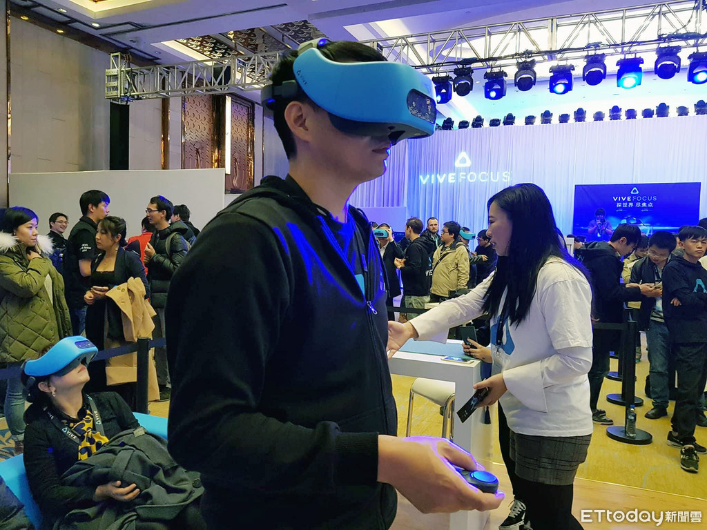 針對 HTC 旗下首款一體機 VR 裝置「HTC Vive Focus」,HTC Vive 團隊特別在會場設置體驗區,現場提供超過 10 種體驗第三方合作廠商開發內容,《ETtoday新聞雲》體驗實機,產品提供了比以往的行動VR還要穩定的顯示效果。