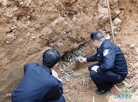據《中國江西網》報導,大餘縣公安局於當天下午接到通報稱,有人在牡丹亭文化公園的施工現場發現大批彈藥,有許多子彈和幾個很像是手榴彈的「鐵疙瘩」。警方立即趕往現場,並封鎖該工地,同時也呼叫防爆專家到現場支援。