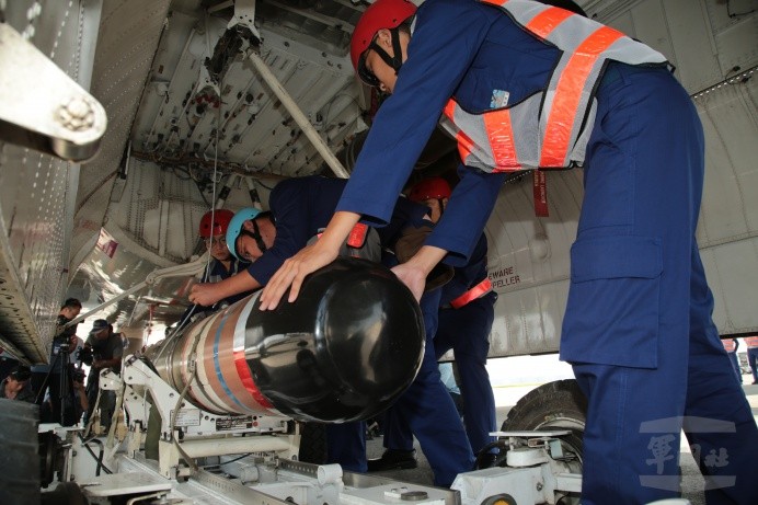 記者團上午搭乘C-130運輸機抵達空軍屏東基地,首先由專人介紹S-2T反潛機、P-3C反潛機及E-2K空中預警機等諸元性能介紹,了解各型機的特性,空軍也安排官兵操演P-3C潛力裝掛及E-2K折展翼,展現扎實的訓練成果。