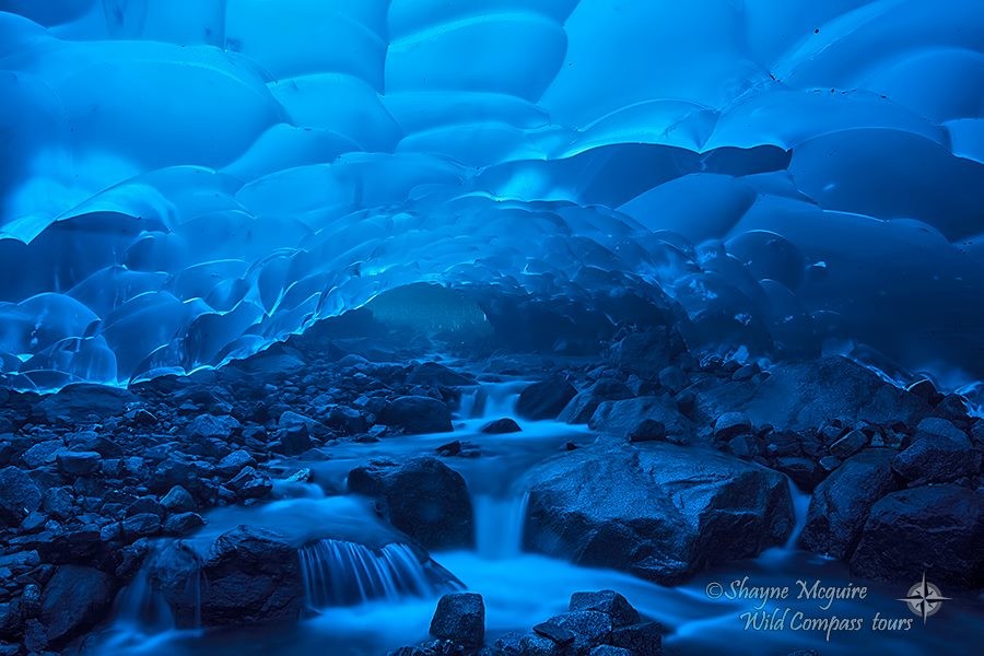 女導遊謝恩.麥奎爾(Shayne McGuire)近日向人們分享了她深入美國阿拉斯加州門登霍爾冰河(Mendenhall Glacier)所拍攝的冰洞(Ice cave)內部美照,晶瑩剔透的湛藍色冰洞、霧氣環繞的流水、層層相疊的冰層,令人彷彿置身在冰雪奇緣中的場景,又或者是奇幻的陸上「海底世界」。