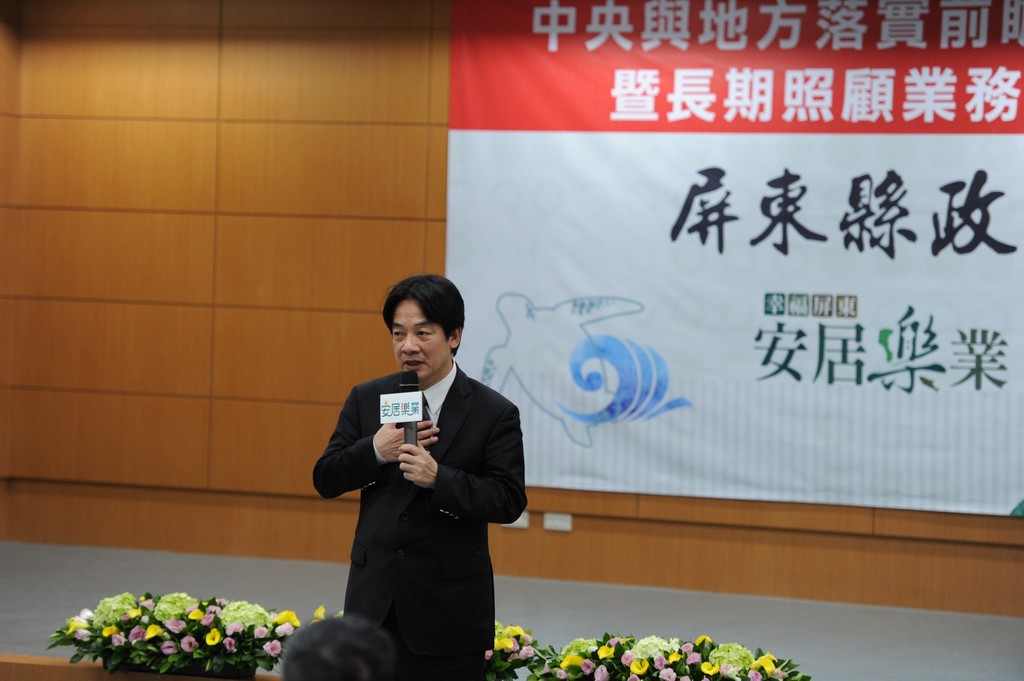 賴清德也強調,政府特別著重在兩個重大政策,希望中央與地方合作共同推動,一個是「前瞻基礎建設」,打造下一階段基礎建設的需求,也是一個擴大公共支出的手段,對經濟發展有很大的幫助。第二個,不諱言,台灣已經是一個老人化的國家,對於65歲以上、失能或失智長輩的照顧,恐怕是刻不容緩,蔡英文總統也提出「長照2.0計畫」,這部分希望能夠尋求地方的合作,共同推動與落實,對這些長輩的照顧提供更好的安排。