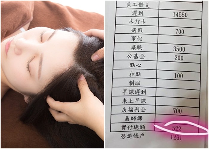 一名女網友於《爆廢公社》貼出照片,表示自己的弟弟是美髮建教合作,每天平均遲到1~2小時,晚上也都做到8、9點才下班,有基本客群。但是看完弟上月的薪資單超無言「覺得他超……」。
