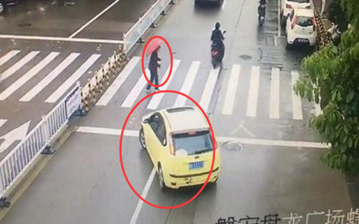 事發於15日上午,監視器畫面顯示,一名白髮老婦人撐著傘走到斑馬線旁,右側車道上一輛黃色轎車看到後立刻停下來,但左側車道的車輛繼續開過去,老婦多次招手示意,希望車輛能停下來讓她先過。大約20多秒的時間,先後有7輛轎車、3輛機車無視老婦,繞開她快速開過去,而黃色轎車駕駛實在看不下去,切線佔住兩個車道,擋下後方來車,老婦這才慢慢過了馬路。