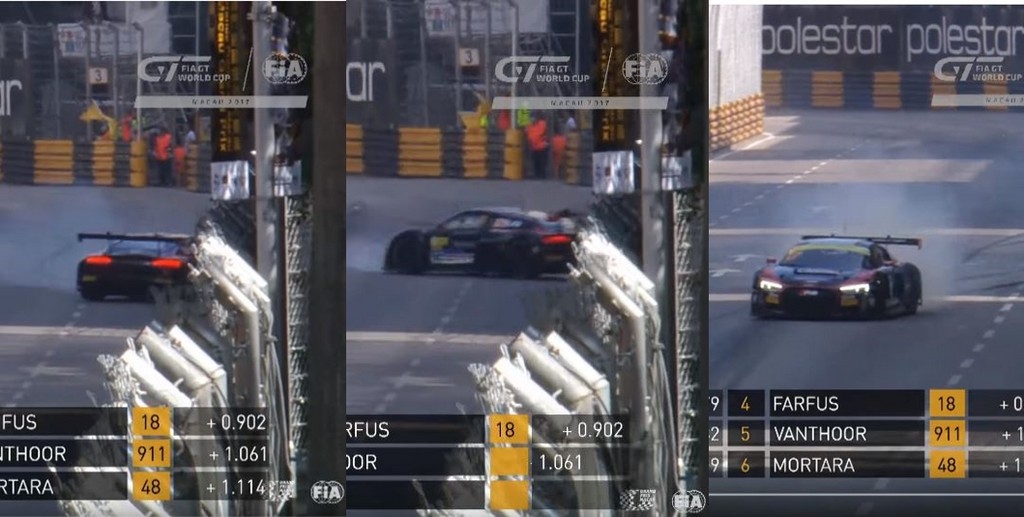 第 64 屆澳門格蘭披治大賽車11月16日正式開始,為期4天。其中以國際汽聯GT世界盃最受矚目。16日舉行的自由練習賽中,其中一位德國車手龐馬(Markus Pommer)開著奧迪R8 LMS GT3迎戰,不料在轉彎時車速太快,差點撞上側邊防護欄,幸好他「一個move」才阻止驚險意外發生。