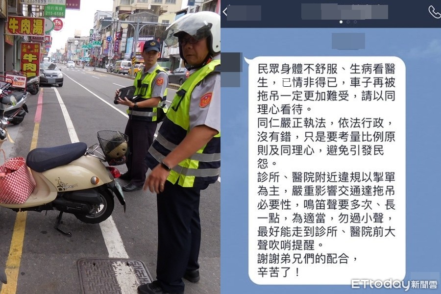 對此,南市交通大隊中隊長便在警方專用群組內發文先說,「民眾身體不舒服、生病看醫生,已情非得已,車子再被拖吊一定更加難受,請以同理心看待」;他接著說,「同仁嚴正執法,依法行政,沒有錯,只是要考量比例原則及同理心,避免引發民怨」