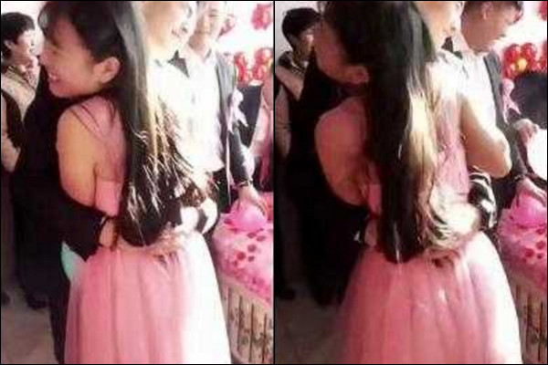 ▲新郎熊抱伴娘,讓新娘當場轉身飆淚狂奔。(圖/翻攝自《東方網》,下同)