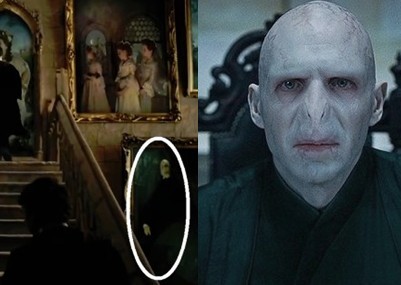 據英國《太陽報》報導,第三集《哈利波特:阿茲卡班的逃犯》電影片段中,當葛來分多學生蹦蹦跳跳、準備通過交誼廳的胖女士畫像時,鏡頭帶過樓梯右下角的畫像,主角竟然就是佛地魔!
