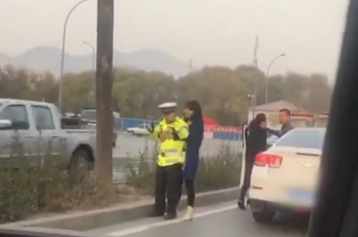 甘肅蘭州一名許姓輔警在值勤時,勸阻一名不繫安全帶的彭姓駕駛發生衝突;沒想到他正要開單時,竟被一名楊姓女子從後方緊緊抱住,整段過程被網友拍下上傳。