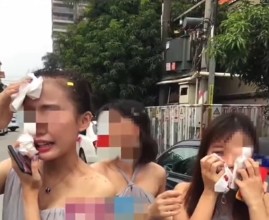 微信朋友圈流傳的照片顯示,3名女子用衛生紙捂著臉,衛生紙上有血跡,還有一名男子臉上也受傷,另外有人正在掃地上的碎玻璃。消息稱,不只姐妹團,攝影師也破相。