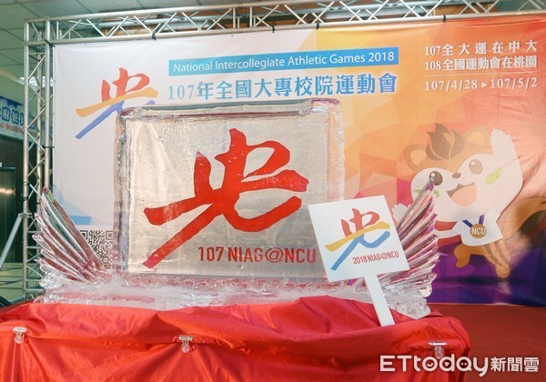 107年全國大專校院運動會(簡稱全大運),將於明年4月28日至5月2日在國立中央大學舉行,不但比賽規模達歷年之最,也是中大睽違30年後再辦,意義非凡!啟動記者會上,由教育部體育署葉丁鵬、桃園市長鄭文燦和國立中央大學校長周景揚以冰雕注酒的方式,共同公布107全大運的logo標誌。