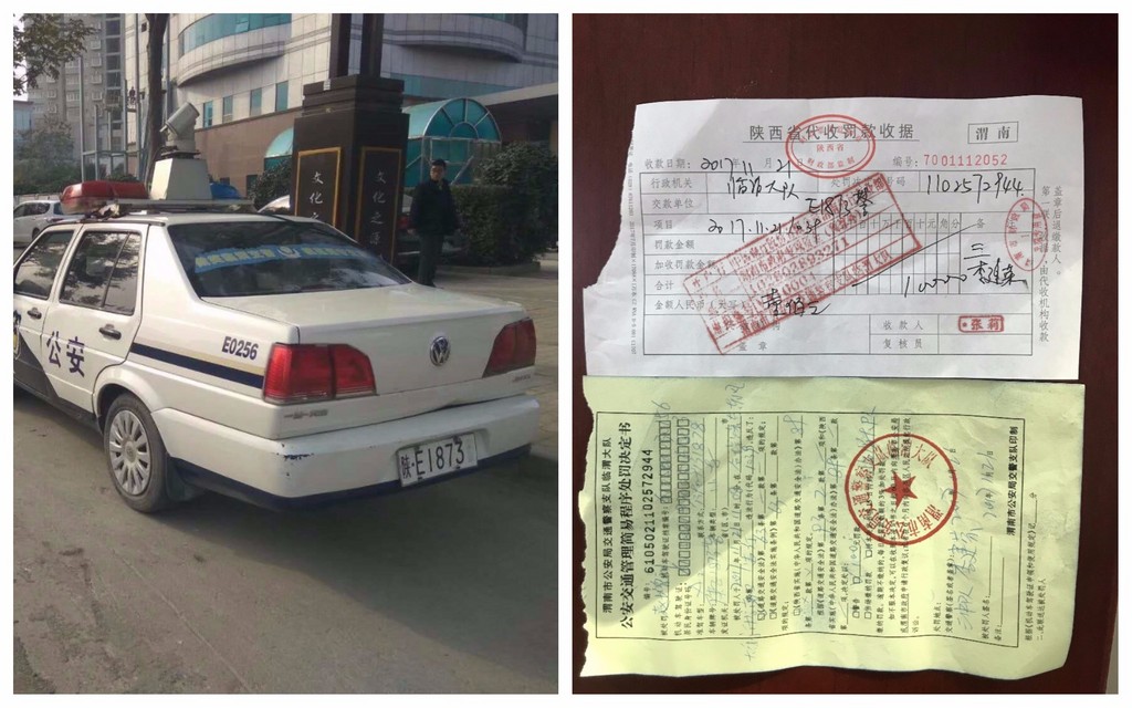 據《華商報》報導,這輛警車所屬於渭南市公安局交警支隊臨渭大隊,該車的違規地點是在渭南市區,位於倉程路和東風大街的十字路口附近。警方注意到此張違規單後,立即著手調查。