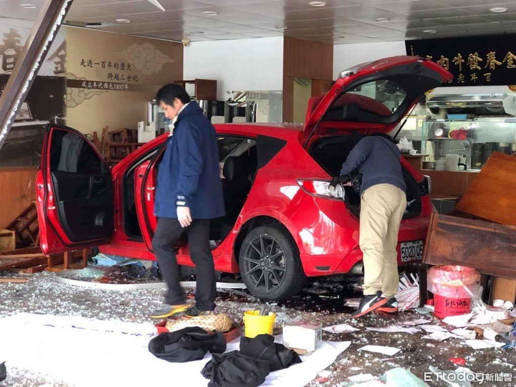 ▲ 金春發牛肉麵店面被撞爛,車主到案後供稱,開車肇事的是就是中山聯盟成員徐雲漢。(圖/民眾提供)