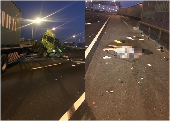 ▲國道車禍,貨櫃車33歲駕駛拋飛車外。(圖/翻攝國道即時路況中心、台灣新聞記者聯盟資訊平台)