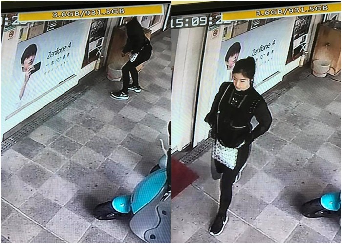 只見監視器畫面拍到一位打扮非常時髦、綁著馬尾的漂亮女生,路過「山屋生活通信行」,但不知什麼原因手拿著護墊,將護墊丟入店家門口水桶後,東張西望看有沒有人看到,就趕緊匆忙離開,老闆說她不是從廁所出來的,完全不理解為什麼,讓人非常生氣。