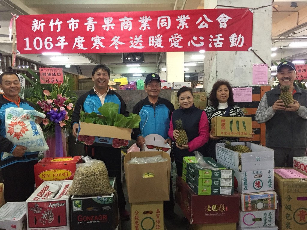 新竹市青果商業同業公會理事長王坤祥表示,每年會員都會捐贈蔬果給需要的社會福利團體,到今年已經18年了,今年除了新鮮的蔬菜及水果外,也有白米或其他物資,捐贈物資的內容很豐富,希望能夠回饋社會,一起對照顧民眾及關懷弱勢盡一些心力。