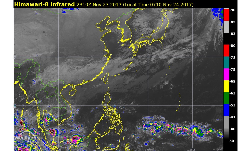 氣象主播賴忠瑋表示,今日主要是受到東北季風影響,加上長江以南有一層淺薄雲系,造成了台灣上空雲量偏多的情況,這也使得迎風面降雨機會增高,但由於只是淺薄雲系,所以降雨不會太明顯,頂多就是飄雨到小雨等級,「預計今晚起,台灣附近的水氣量還會再明顯增加,苗栗以北及東部降雨機率也會明顯提高。」