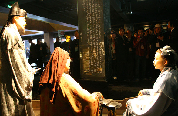 ▲遊客們在眉山三蘇紀念館觀看「蘇軾出川」的場景展覽。(圖/新華社)