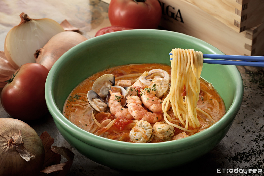 這次3款湯麵中的雞肉咖哩奶油湯麵改以胡荽、葫蘆巴、紅辣椒等香辛料調製的印度咖哩,再與適當比例的香醇鮮奶油湯頭搭配;培根野菇奶油湯麵以西芹、洋蔥、紅蘿蔔等蔬菜燉煮高湯,再與牛奶一同熬煮成味道溫和的奶油湯頭,加上舞菇、杏鮑菇、鴻禧菇與金針菇共4種不同菇箘類作為主角;奶油海鮮蕃茄湯麵一碗就能品嚐到生食等級帆立貝、白蝦、蛤蜊、中卷等來自大海的食材。