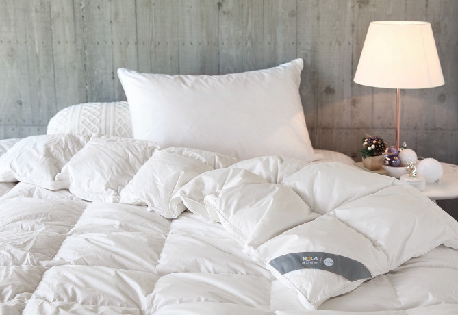 羽絨被向來是消費者冬日保暖首選,結構蓬鬆,利於容納空氣,透氣性佳,可鎖住被窩溫度;但潮濕空氣是蓬鬆羽絨的剋星,因此HOLA推出90/10可水洗奈米科技防螨抗菌羽絨冬被,羽絨表層奈米防撥水技術,加上表布防螨抗菌功能,更能對抗濕冷環境,並可將被胎直接放入洗衣槽內柔洗。此外,羽絨分區保暖設計,在頭、尾段單格充絨量分別多出60%與40%,解決消費者易感到手腳冰冷問題。