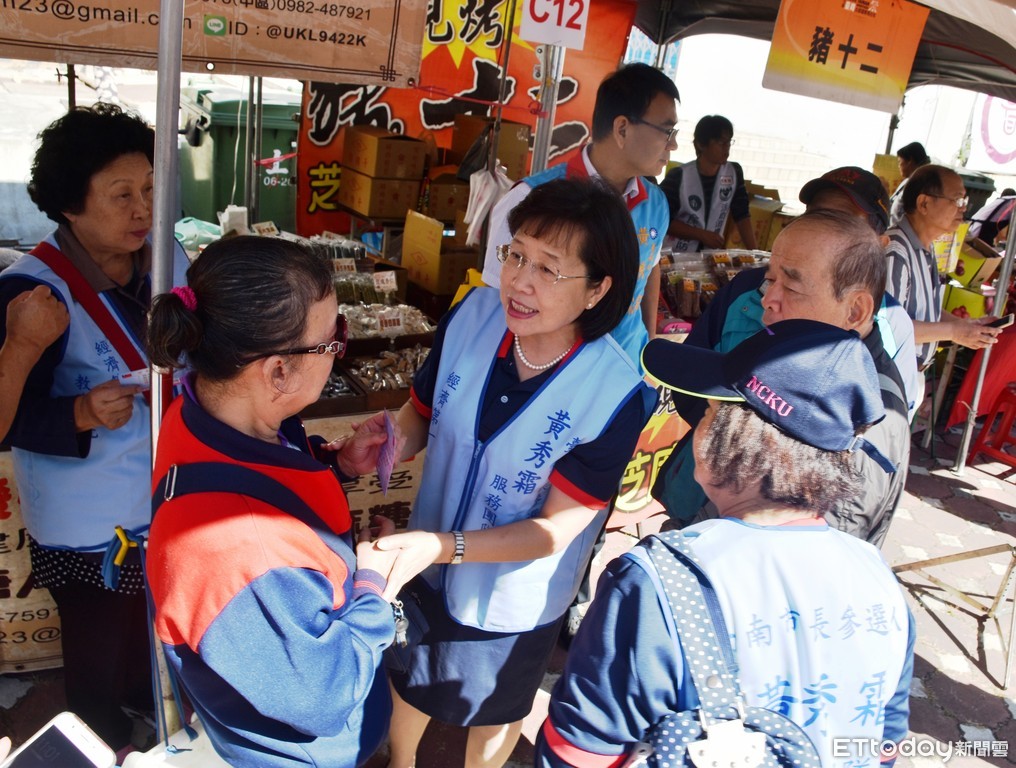 ▲爭取國民黨台南市市長提名的大台南婦女會理事長、前台南大學校長黃秀霜,首度展開拜票活動,受到現場民眾熱烈歡迎,展現黃秀霜個人魅力。(圖/黃秀霜提供)
