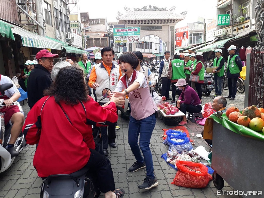 ▲爭取民進黨市長提名立委陳亭妃,26日台南新市掃街,受到鄉親熱情歡迎。(圖/環保局提供)