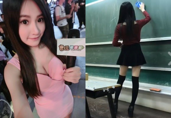 ▲艾瑞絲在大同高中實習教英文時,穿膝上襪太火辣爆紅(圖/記者周宸亘攝)