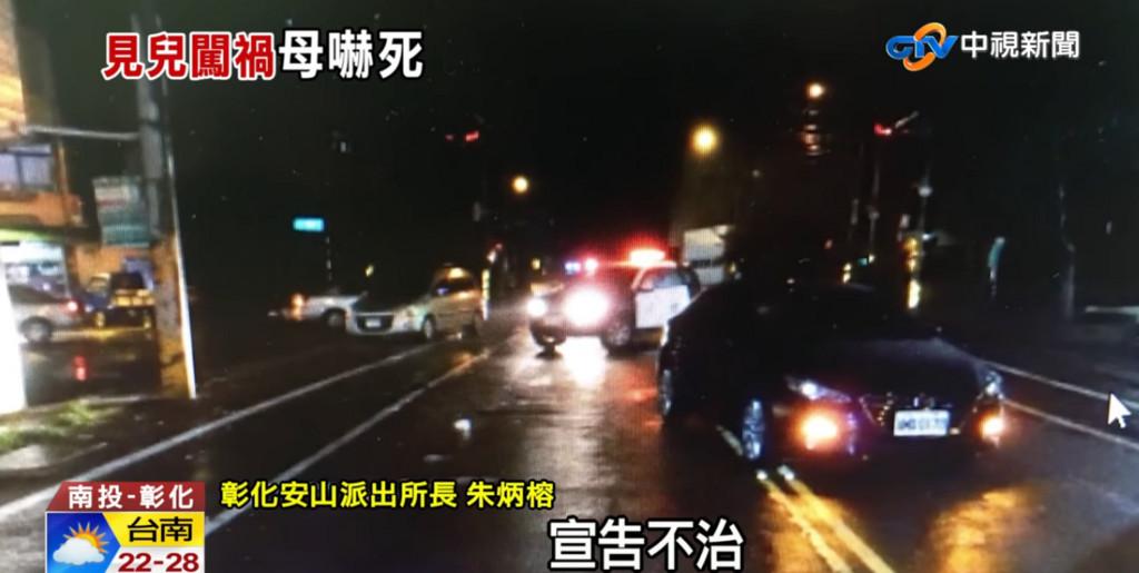 南投26歲張姓男子26日晚間開車行經彰化芬園鄉,在大彰路口撞上過馬路的70歲許姓老翁,隨即打電話給父母,媽媽趕到現場,一見老翁渾身是血,坐在路旁等待送醫,竟嚇得突然昏倒,當場失去呼吸心跳,送醫不治。許翁則是左腳骨折、頭部撕裂傷,住進加護病房觀察中。