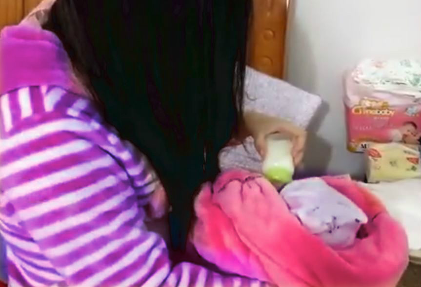 ▼少女暫時停止課業,在家照顧女嬰。