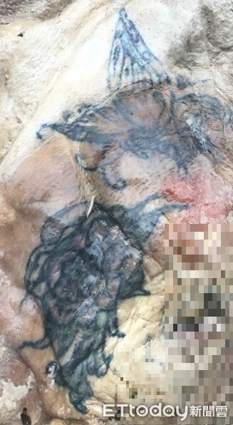 ▲女性浮屍外觀因泡水腐爛發腫,身份無法辨識,左胸前有蝴蝶及玫瑰刺青明顯特徵。(圖/花蓮縣警察局提供 下同)