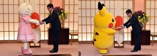 日本外務大臣河野太郎在本月28日,任命風靡世界的「凱蒂貓」與電玩角色「精靈寶可夢」為2025萬國博覽會的拉票大使。在當天舉行的任命式上,他還親自向他們(「寶可夢」的代表為皮卡丘)頒發外務省的任命證書。凱蒂貓和皮卡丘也揮手,向與會者強調會努力以赴。