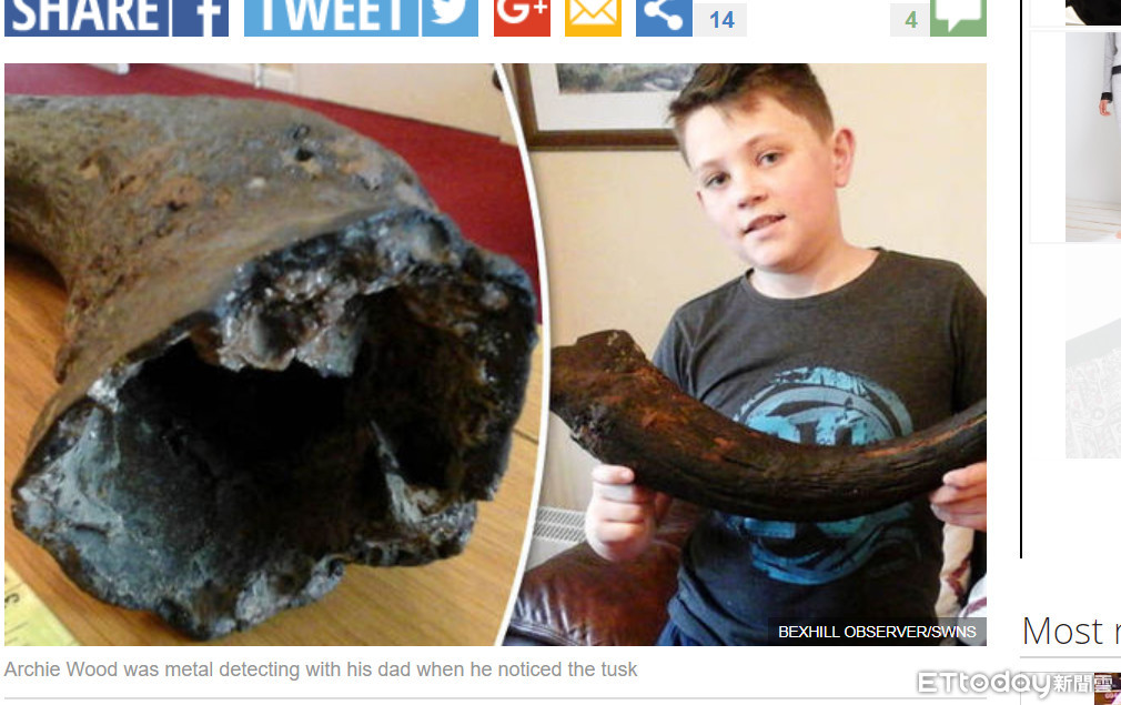 沙灘上總是會出現一些人類或是大自然無法被海洋消化的物品,可能是垃圾、珊瑚貝殼、或是漂流木,國外有許多人都曾在沙灘上找尋到可回收的東西,但是英國12歲男孩伍德(Archie Wood)卻在沙灘上撿到了一個稀世珍寶。