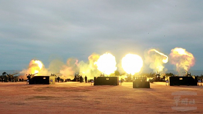 此次金門聯信操演中,包括105榴砲、120迫砲、8吋榴砲及155加農砲等多型火砲,在不同操演陣地準備就緒,伴隨射擊任務下達,各型火砲依射程、火力對目標區實施射擊,現場砲聲隆隆,海上目標區震起高聳水柱,場面相當壯觀。