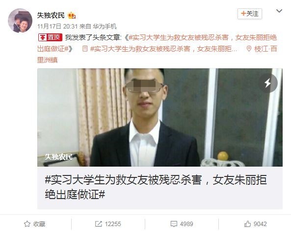 就讀大學四年級的學生李俊杰今年初原本在河北省石家莊某間銀行實習,3月下旬突然接到女友小朱(化名)的訊息,希望他能趕快回到兩人的租屋處,沒想到一進門就遭對方的王姓前男友持刀殺死。李父心疼兒子就這麼走了,到處蒐證期盼法官能判凶手死刑,沒想到小朱卻連出庭作證都不願意,「這樣的態度對我們太不公平了,要我跪著求她都行,但她都沒有回應。」