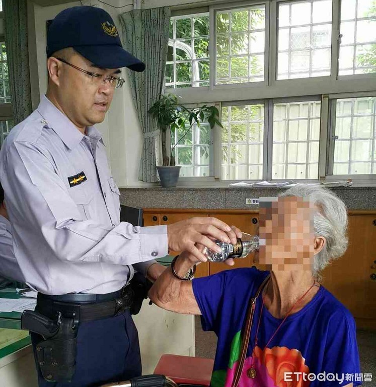 ▲82歲的王黃老婦人,被帶到警所休息安置,由員警照顧。(圖/警方提供)