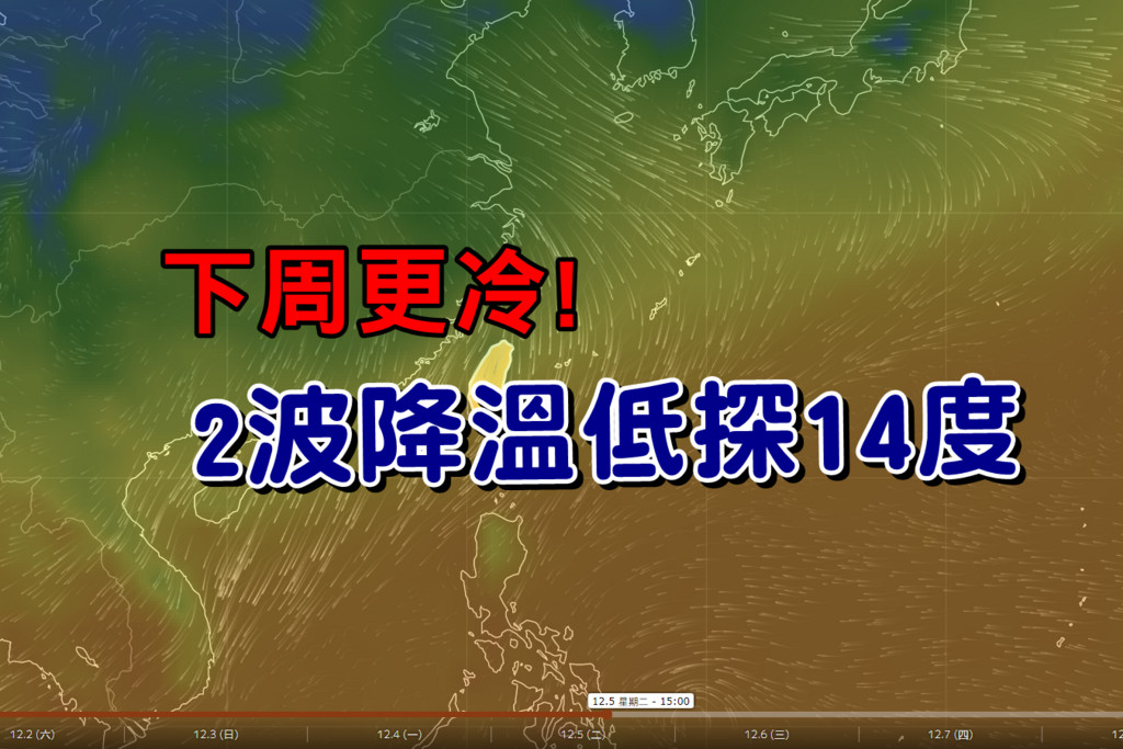 天氣風險公司總經理彭啟明分析,未來一周有2波東北季風南下,第一波已於11月30日下午報到,預計下一波將於12月4日接力影響台灣,主要影響還是以北東部為主,除了氣溫下滑轉涼,還有短暫雨,又濕又涼,尤其第二波強度更強,像再下一階梯般變冷,北部下探15度。未來冷空氣一波波,溫度往下跌,將一直持續到月中,連高雄下周溫度都只有18到24度,也會感受到冷,「大家可以準備過冬」。